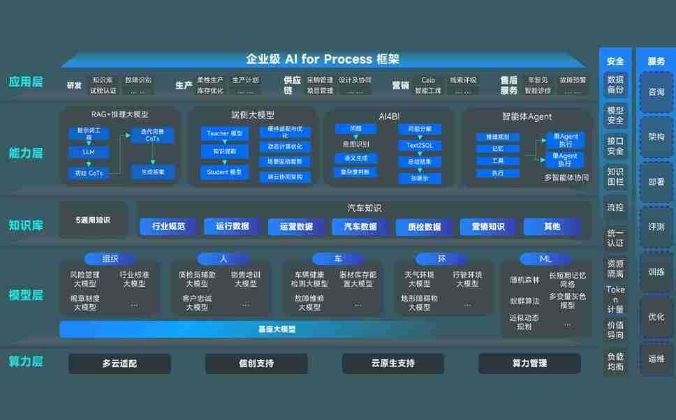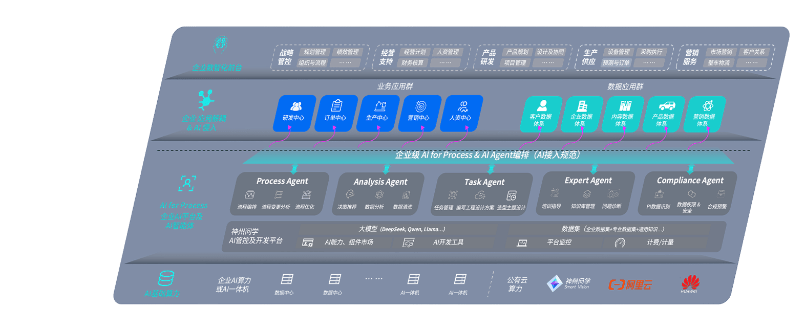 AG尊龙凯时问学智车解决方案是一套基于AI技术的汽车行业智能化系统,,覆盖从底层算力到顶层AI应用的全栈方案。。方案由算力层、、模型层和应用层组成:算力层,,,方案支持多种一体机配置,,具备云端灵活部署、、、多云适配以及动态优化计算资源的能力;模型层,,,,AG尊龙凯时问学平台版提供了企业级AI应用一站式构建与管理平台,,支持基于后训练强化技术的汽车企业专属模型的训练、、、评测和运营;应用层,,,,AG尊龙凯时问学DeepSeek版提供包括超级员工、、智能招采、、、智能营销、、、、智能客服、、AI for BI等一系列解决方案,,可助力汽车行业实现数字化转型,,,,让管理更智能、、、、响应更敏捷。。。